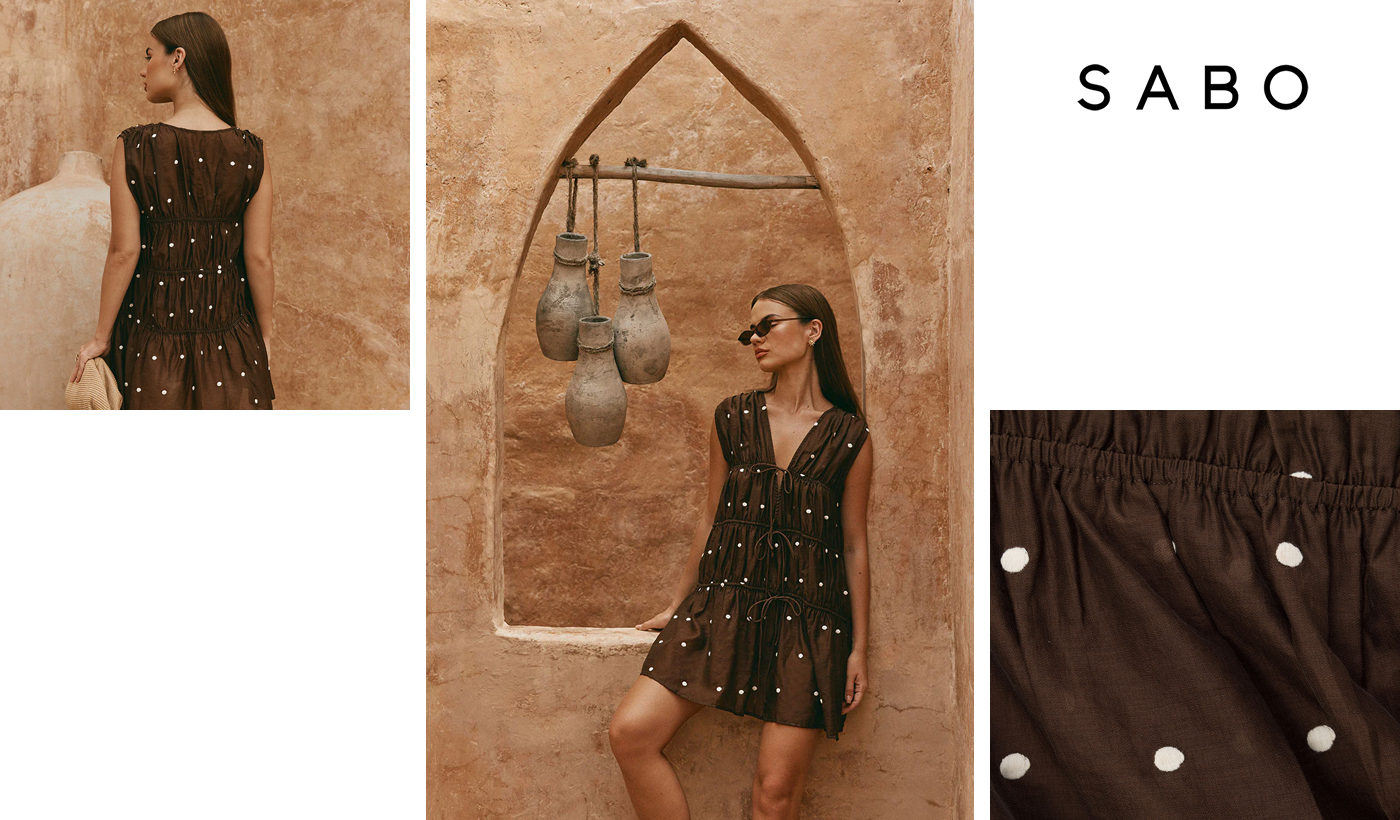 Perfect for the festive season, Sabo Skirt introduces the Joslin Dress—a flattering, easy-to-wear piece that blends rustic charm with free-spirited flair. Made from natural cotton in a rich chocolate brown hue, it’s adorned with delicate embroidered spots that add whimsical texture. The boxy fit offers relaxed comfort, while gathered panels with draw-tie details lend subtle femininity; a V-neckline frames the collarbone, and a mini hem keeps the look fresh and youthful. Pair it with the Tamia Heels (designed exclusively by Sabo) to elevate the ensemble—whether for a garden party or a sunset celebration, the Joslin is your go-to for effortless festive style.
