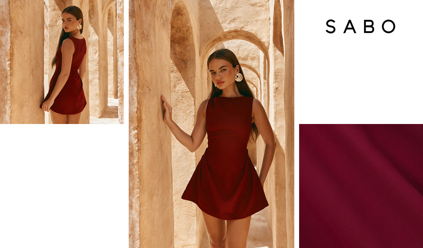 For those who crave sleek sophistication with a touch of playfulness, Sabo Skirt presents the Camellia Dress—a tailored design with a modern, structured silhouette that redefines summer elegance. Cut from buttery-soft burgundy fabric, it features a smooth fitted bodice with a high round neckline for polished poise, balanced by a mini skirt with voluminous pleat details at the sides that add movement and flair. Keep it casual with ballet flats for daytime ease, or accessorize with the 18K Elouise Knot Earrings (also designed exclusively by Sabo) for evening allure. The Camellia is proof that structure and freedom can coexist beautifully—just like Sabo Skirt’s vision of summer dressing.