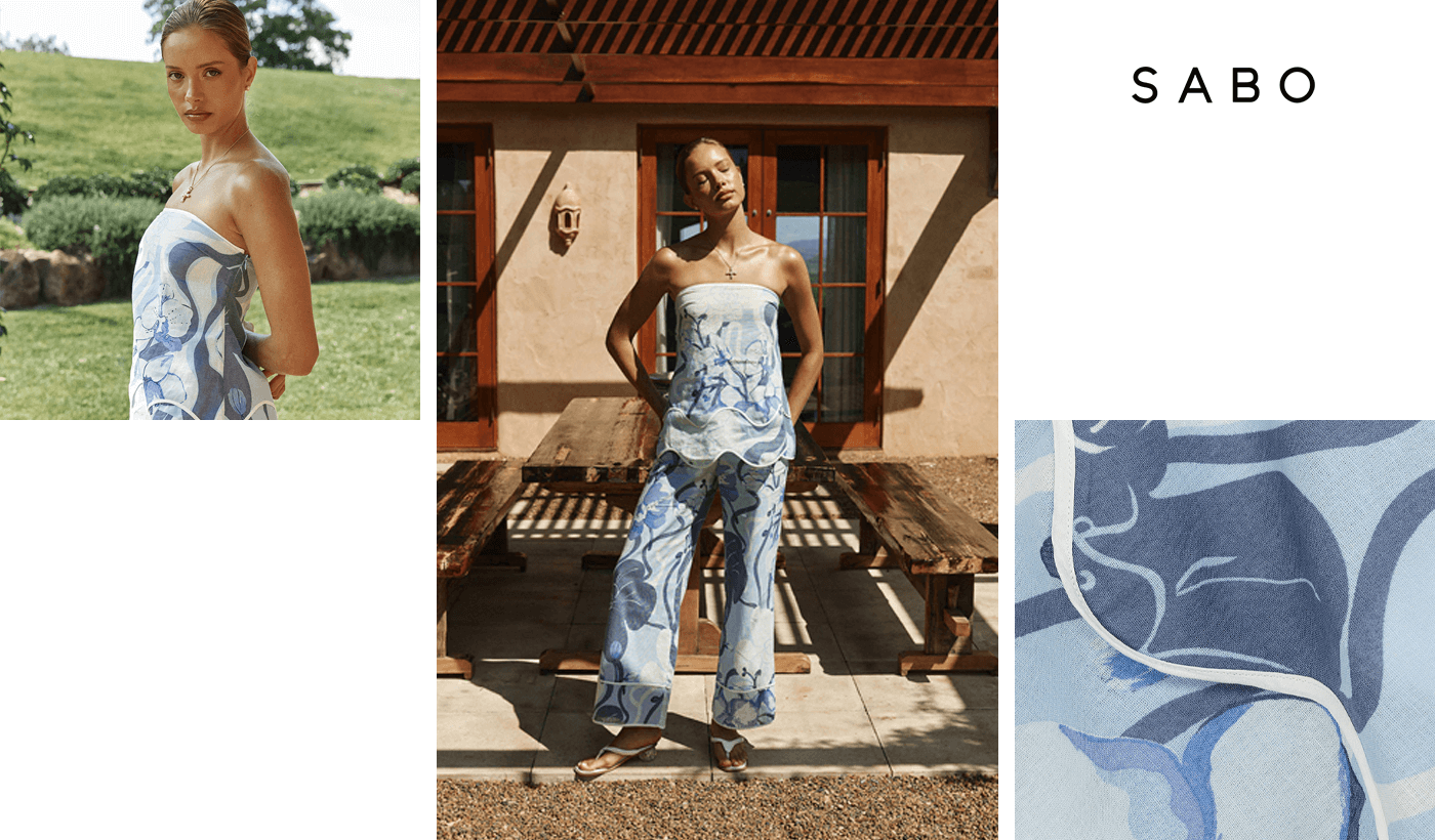 For a timeless two‑piece option, Sabo Skirt presents the Brooklyn Top and matching Brooklyn Pants. The strapless top is cut from a natural linen‑cotton blend and showcases Sabo Skirt’s exclusive Bouquet Blu print. Contrast white trims and a wavy hem detail bring a fresh, modern twist to the classic silhouette. Pair the top with the coordinating Brooklyn Pants to create a coordinated ensemble that’s breezy yet polished—perfect for sipping rosé on a sunny patio or dancing among string lights as the evening cools.