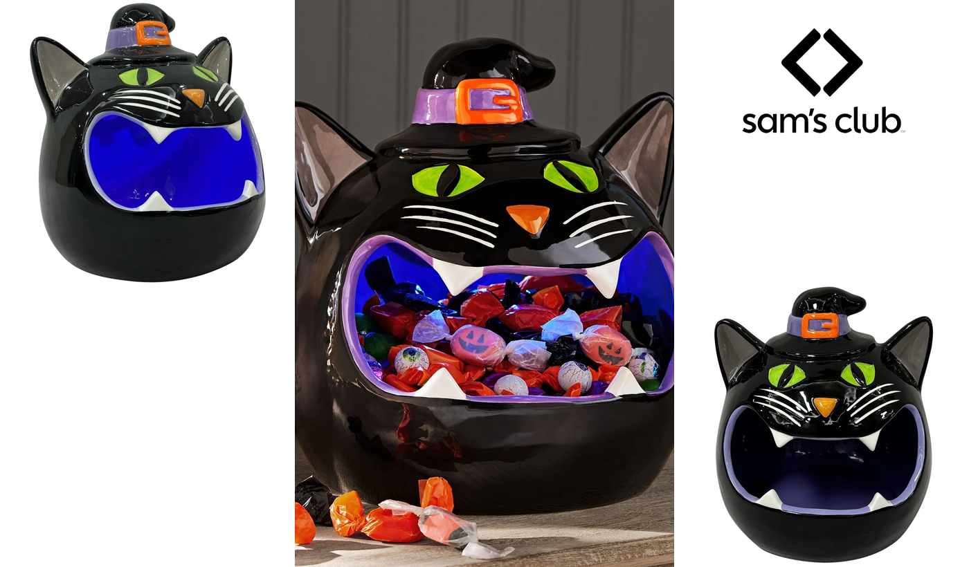 The Member's Mark pre - installed light Halloween candy bowl draws inspiration from the design of a playful black cat's head, topped with a classic witch hat. Made of ceramic, it creates a vivid cat image, adding a dreamy and mischievous touch of childlike fun to your Halloween party. Whether placed on the porch to welcome little guests or set on the kitchen counter or party table, it instantly becomes the center of attention, intensifying the festive atmosphere.