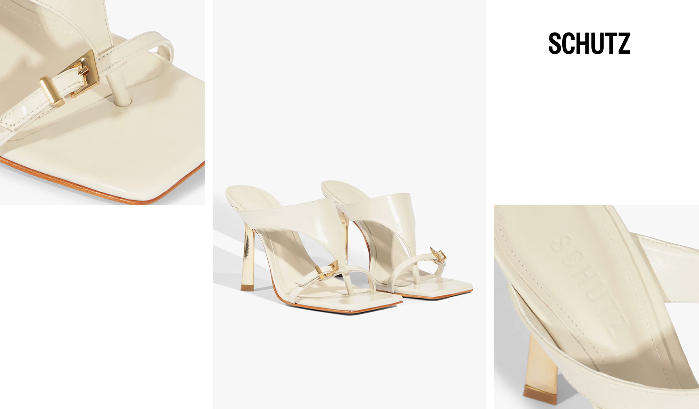 Artfully designed with smooth cutouts and a flash of gold, the Tana sandal redefines power dressing for the season. Its white leather finish and squared toe balance structure with ease, making it perfect for both office polish and weekend sophistication. The gold metallic heel feels more like jewelry than hardware, adding a subtle pop to wide‑leg trousers or silk dresses. Schutz crafted Tana to prove that neutral doesn’t mean boring—it means endlessly versatile and undeniably elegant.
