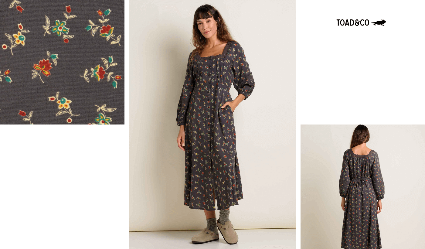 Toad&Co’s design team has a true knack for creating clothing that’s both functional AND fun-loving, and this swingy dress is a perfect example. Made from 100% organic cotton, it features a clever “button” front that’s stitched closed at the center—so it will never gape around the midsection, ensuring a smooth, confident fit. A subtle crepe texture not only adds visual interest but also makes the dress super packable; just shake it out and go, whether heading to a weekend market or jetting off on an impromptu trip. The easy, flowing silhouette brings a playful movement to any outfit, proving that practical design can be effortlessly charming.